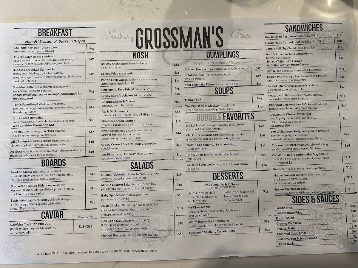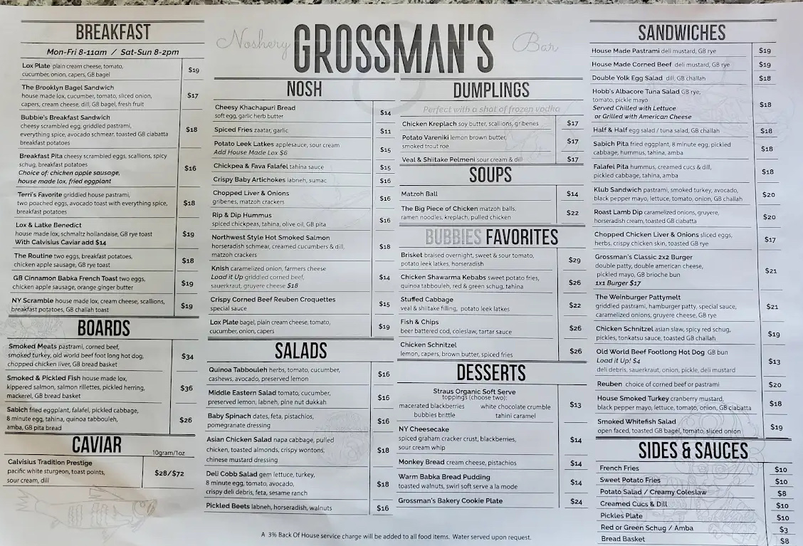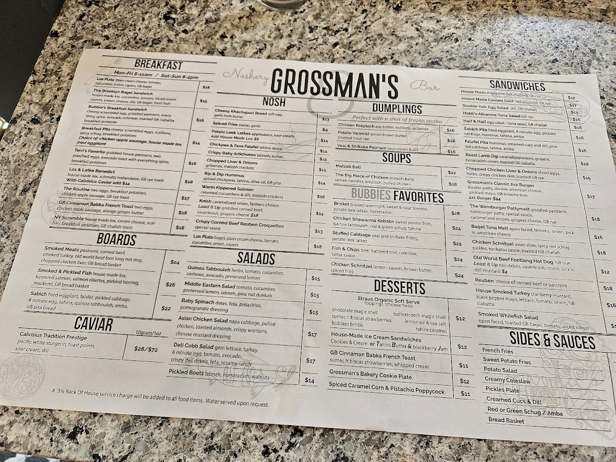 The atmosphere at Grossman's Noshery is nothing short of inviting. With a charming outdoor patio that boasts a peaceful ambience, it's the perfect setting for leisurely lunches or dinners. Customers have raved about the vibes, calling it “immaculate” and a lovely spot for family gatherings. Reviewers have highlighted the excellent service that complements the menu perfectly, making every visit feel special. “Quick and friendly,” notes one patron, while another appreciates the attentive yet unobtrusive nature of the staff.