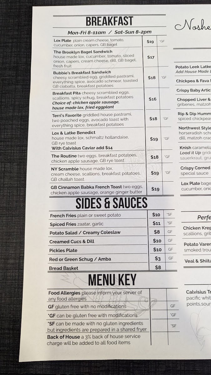 Your journey begins with an enticing menu that proudly showcases comfort food classics, highlighted by their dumplings such as the succulent Chicken Kreplach with soy butter, scallions, and gribenes for just $17.00, and the heartwarming Potato Vareniki, elegantly drizzled with lemon brown butter and topped with smoked trout roe, also priced at $17.00. These dishes invite you to indulge in velvety textures and popping flavors that sing of tradition.